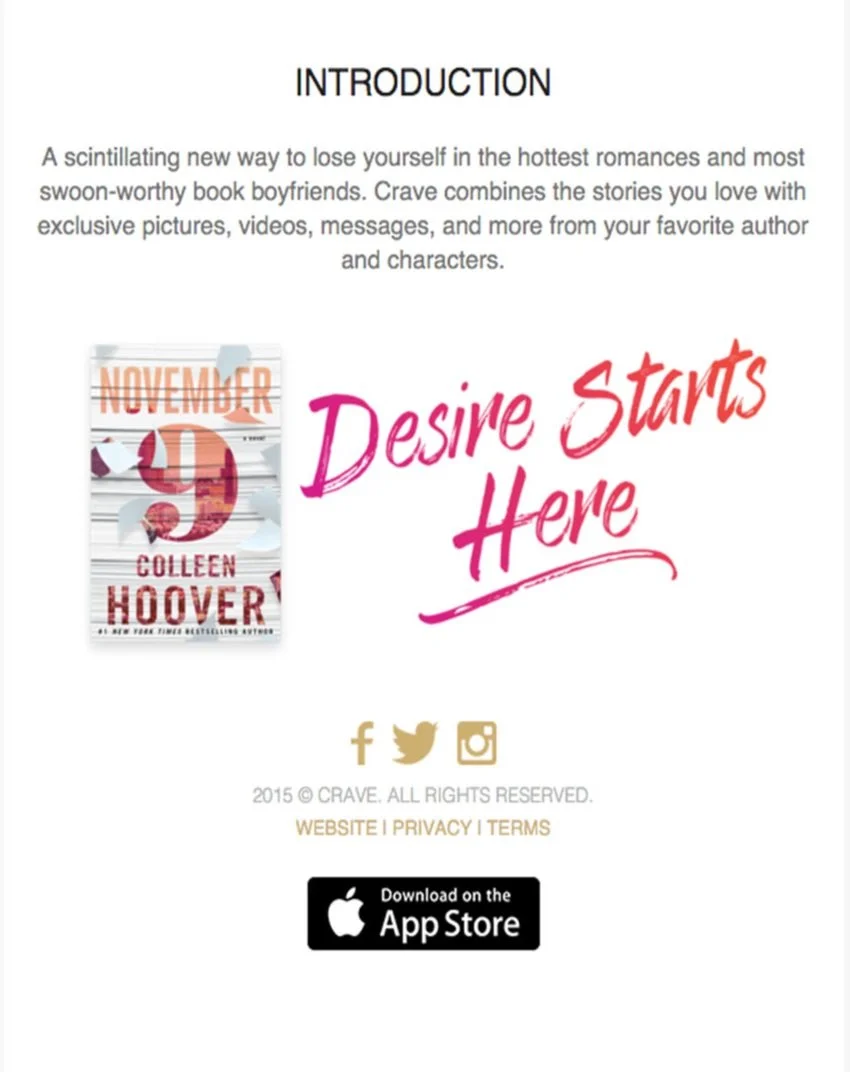 Part-book, part-video, part-interactive character experience, Crave gave readers exclusive access to the books and authors they love.